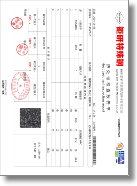 鉅研特殊鋼的熱處理工廠通過了ISO9000質(zhì)量認證,并提供嚴謹?shù)摹稛崽幚砥焚|(zhì)檢查報告書》,便于品質(zhì)追溯。
